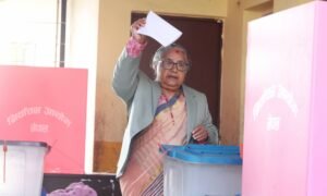 काठमाडौँ, २१ फागुन : प्रधानमन्त्री सुशीला कार्कीले काठमाडौँ क्षेत्र नं ५ स्थित धापासी निमावली फैमालचुली मतदान केन्द्रबाट मतदान गर्नुभएको हो । मतदानपश्चात् सञ्चारकर्मीलाई प्रतिक्रिया दिँदै निर्वाचन उत्साहपूर्वक भइरहेकामा आफू खुसी भएको बताउनुभयो । तपाईंको नेतृत्वमा निर्वाचन हुँदैछ भन्ने प्रश्नको जवाफमा…